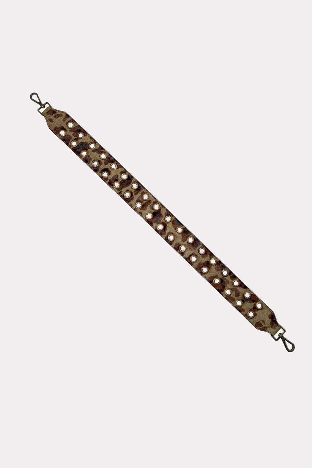 Alça avulsa confeccionada em couro bovino com pelo animal print, combina textura e autenticidade em um design versátil e impactante. Ideal para transformar e atualizar